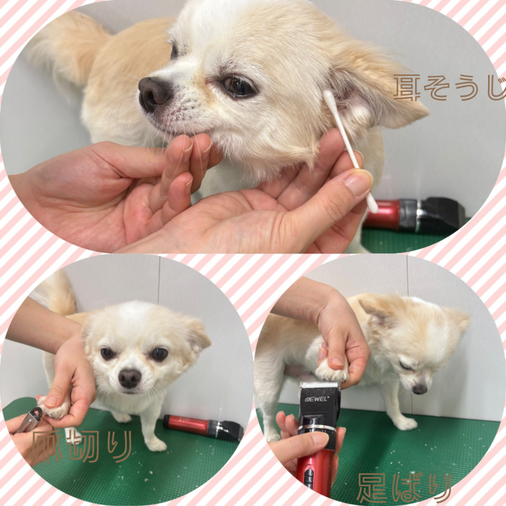 耳掃除、爪切り、足裏のバリカンをします