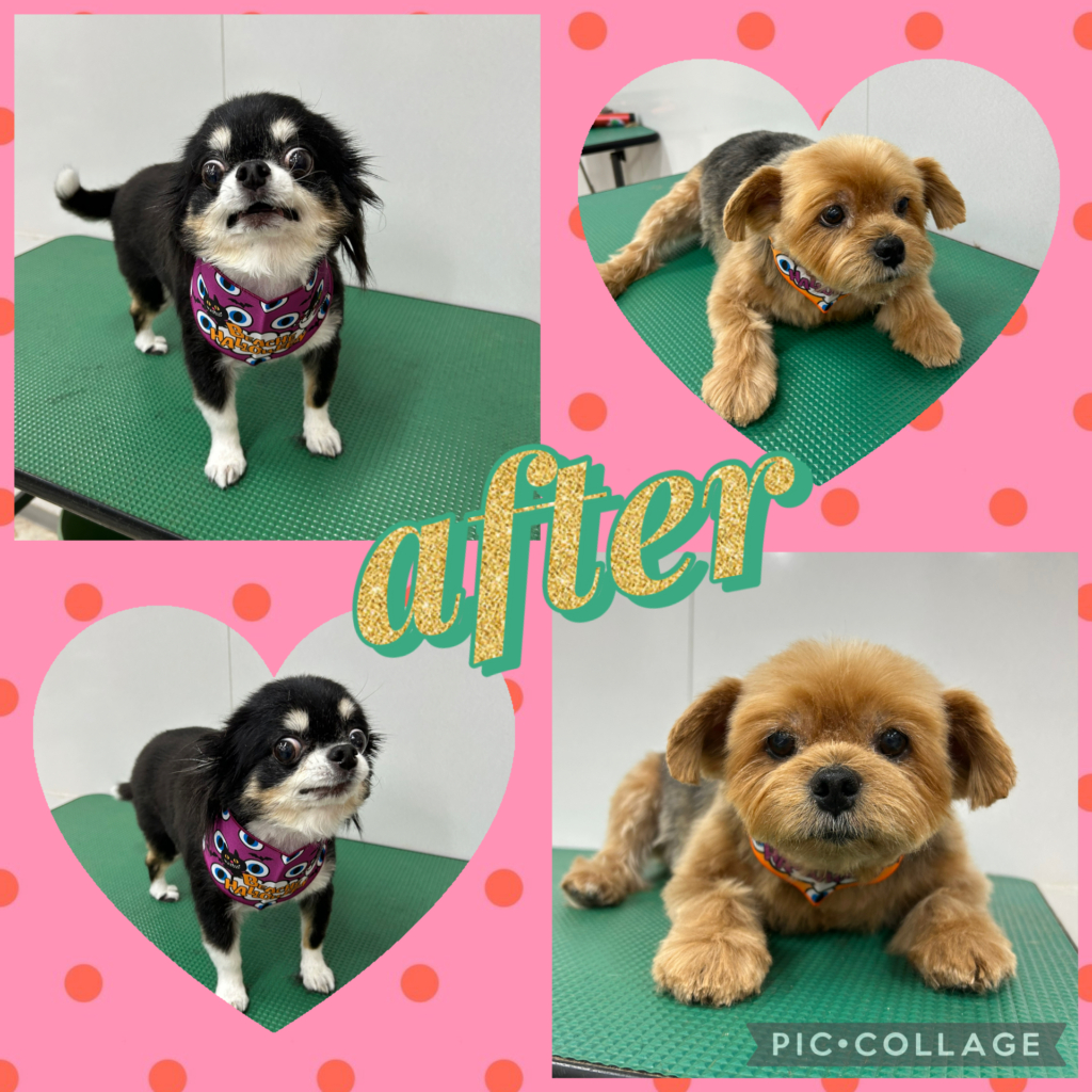 ヨーキーのココちゃんとチワワのルナちゃんです✨
