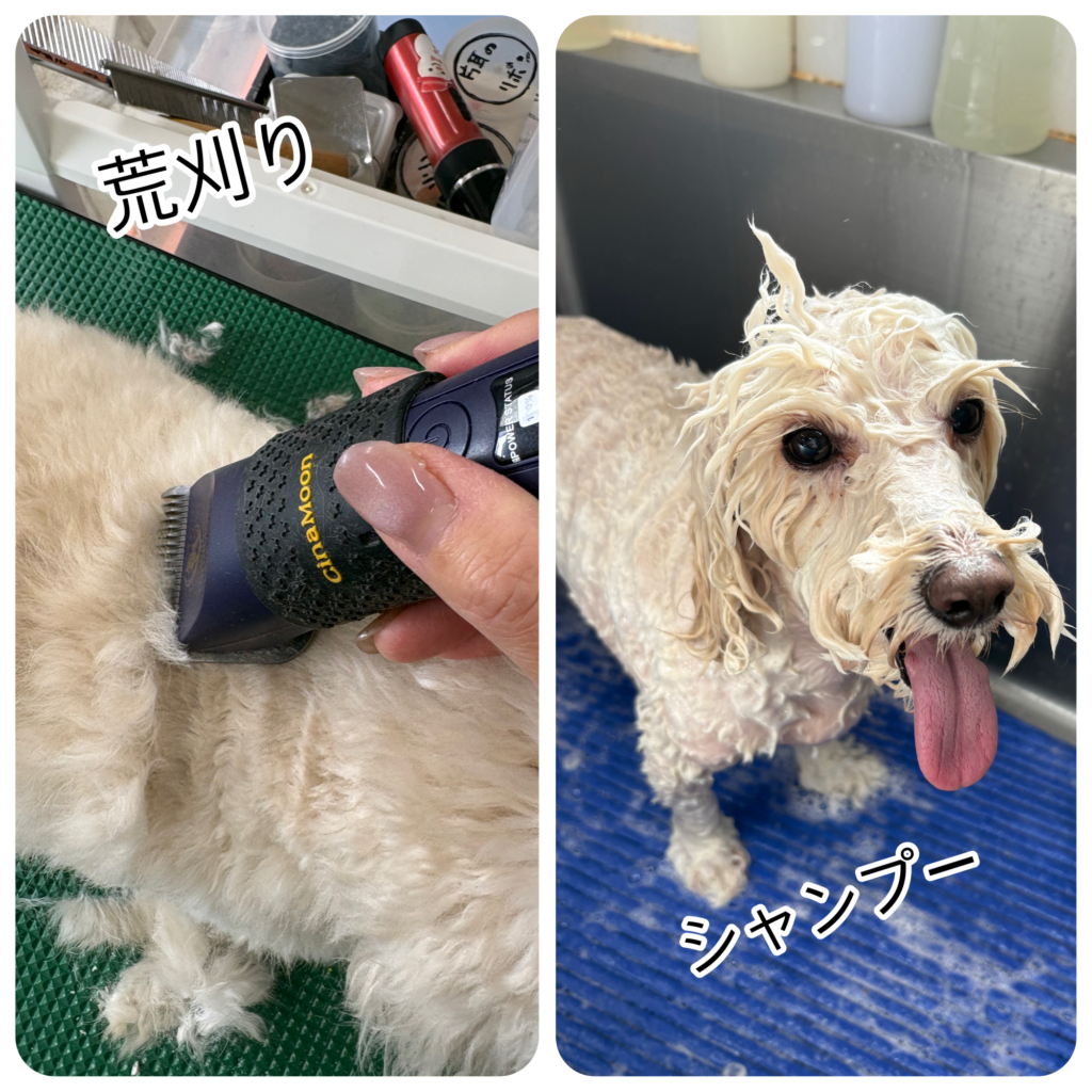 次に荒刈りをしてシャンプーしていきます