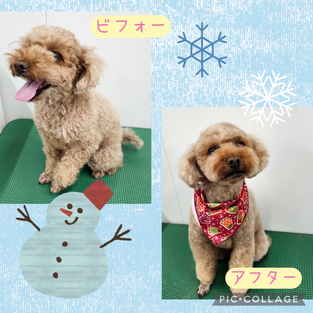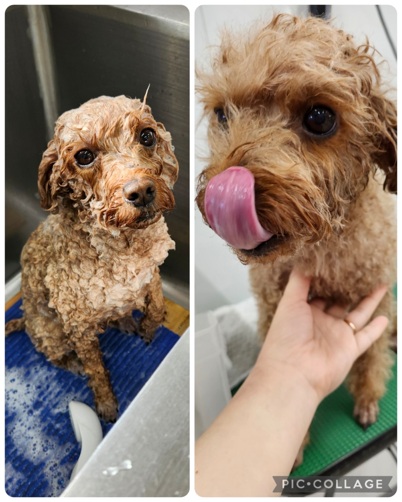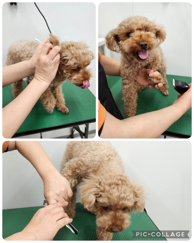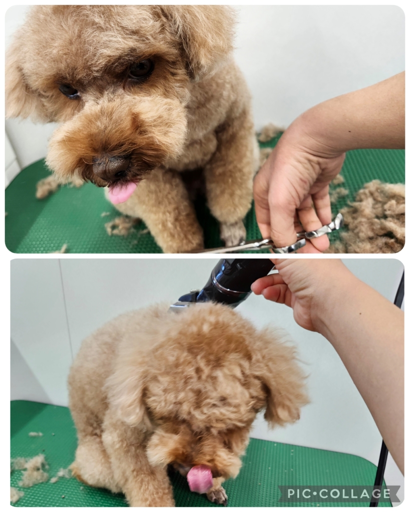 写真では分かりにくいですがトリミング台ではしゃいでます