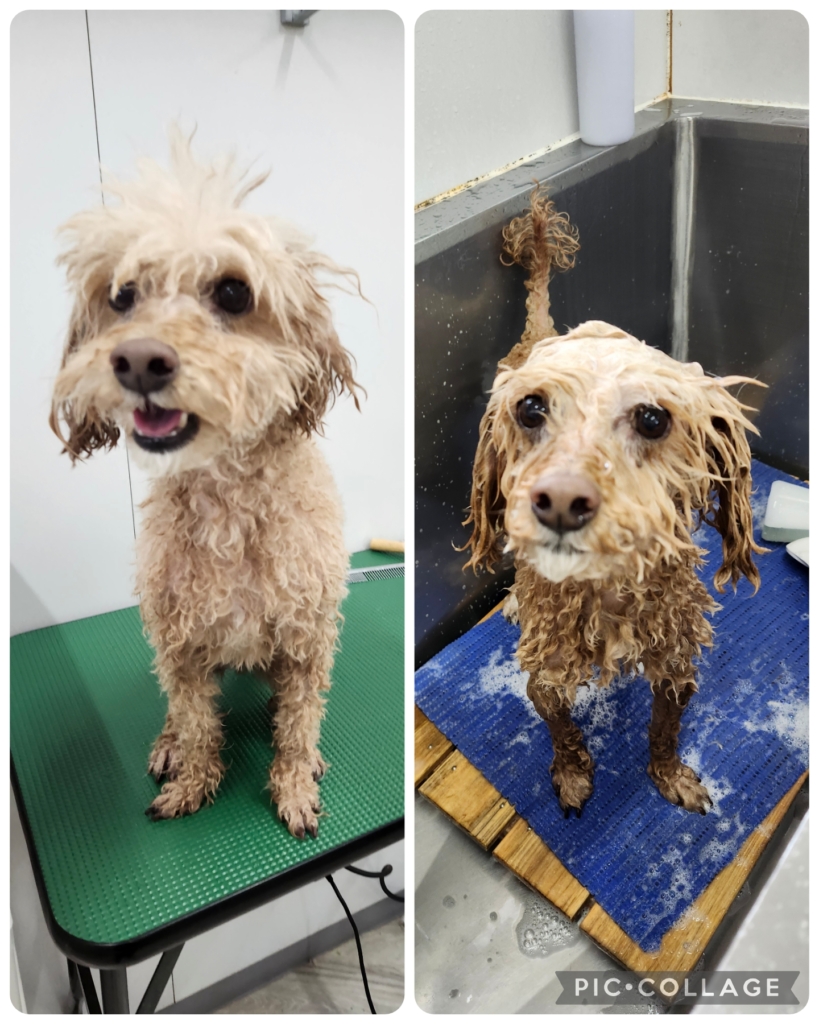 シャンプー中、少しアンニュイなお顔